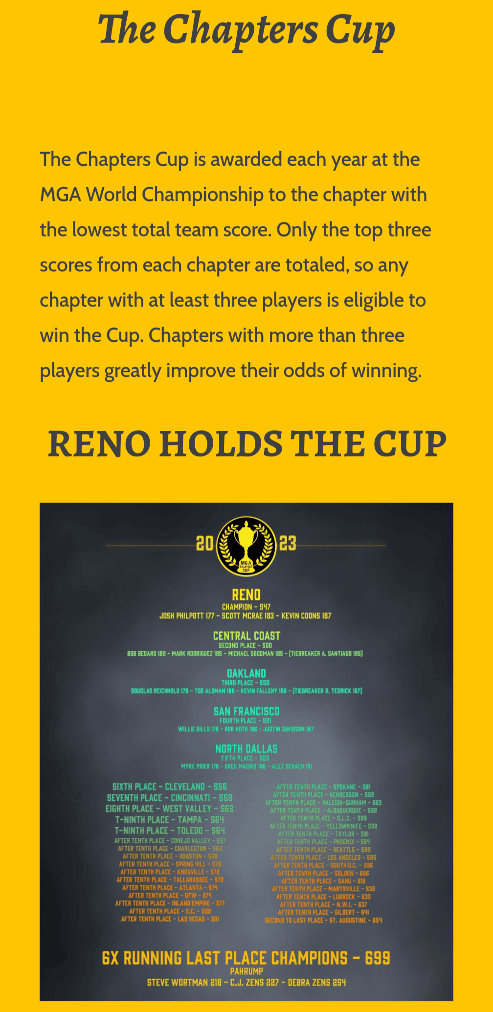 Always a bridesmaid, never a bride. That statement doesn’t accurately depict my MGA career, but that’s the thought that will always play in my head when I look at my second place trophy at the 2023 MGA World Championship.